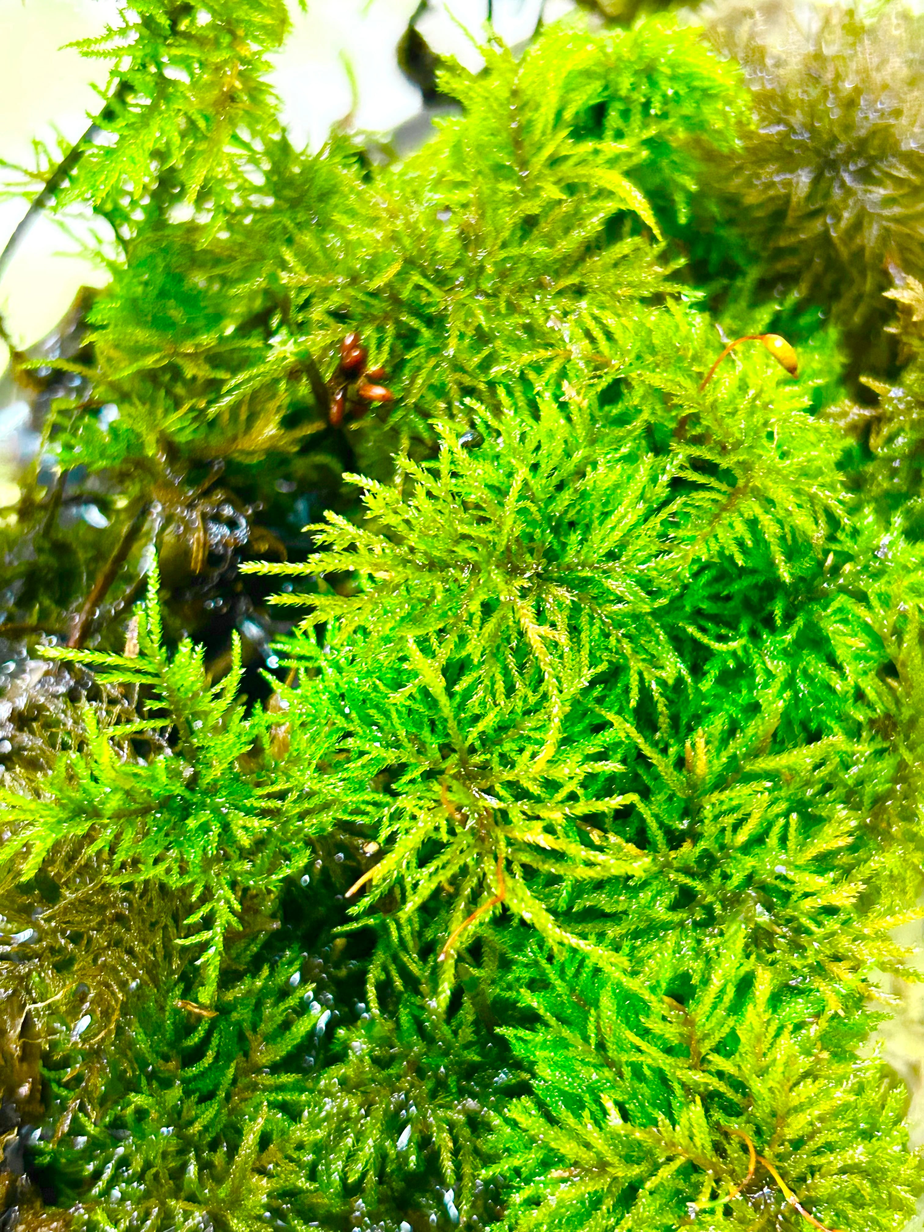 コウヤノマンネングサ (Climacium japonicum)は国内最大のコケ植物と言われています。ヤシの木のような姿からコケリウムやテラリウムによく使われており、大きく目立つ姿から人気の種にもなっております。初心者でも育てやすく、環境が整えば水中でも育ちます。