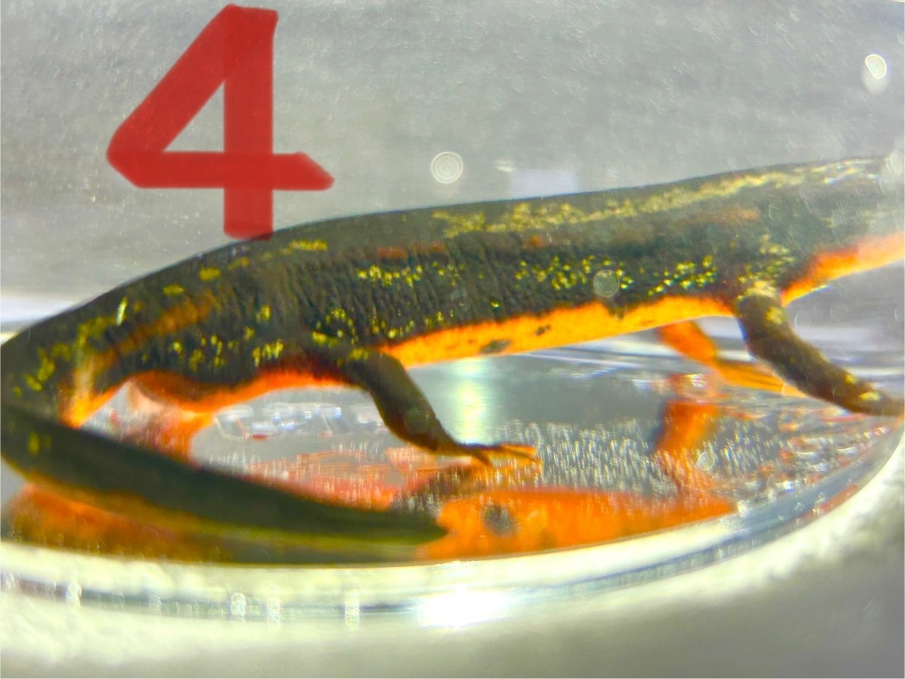 アカハライモリに比べ、水中よりも水上を好む性質があります。